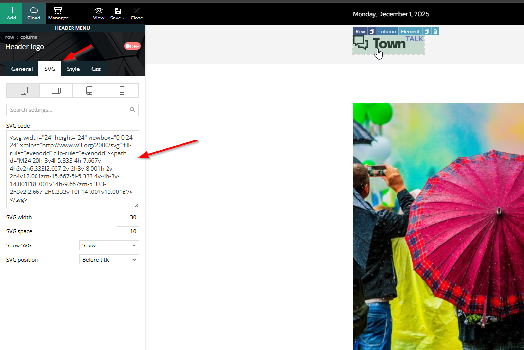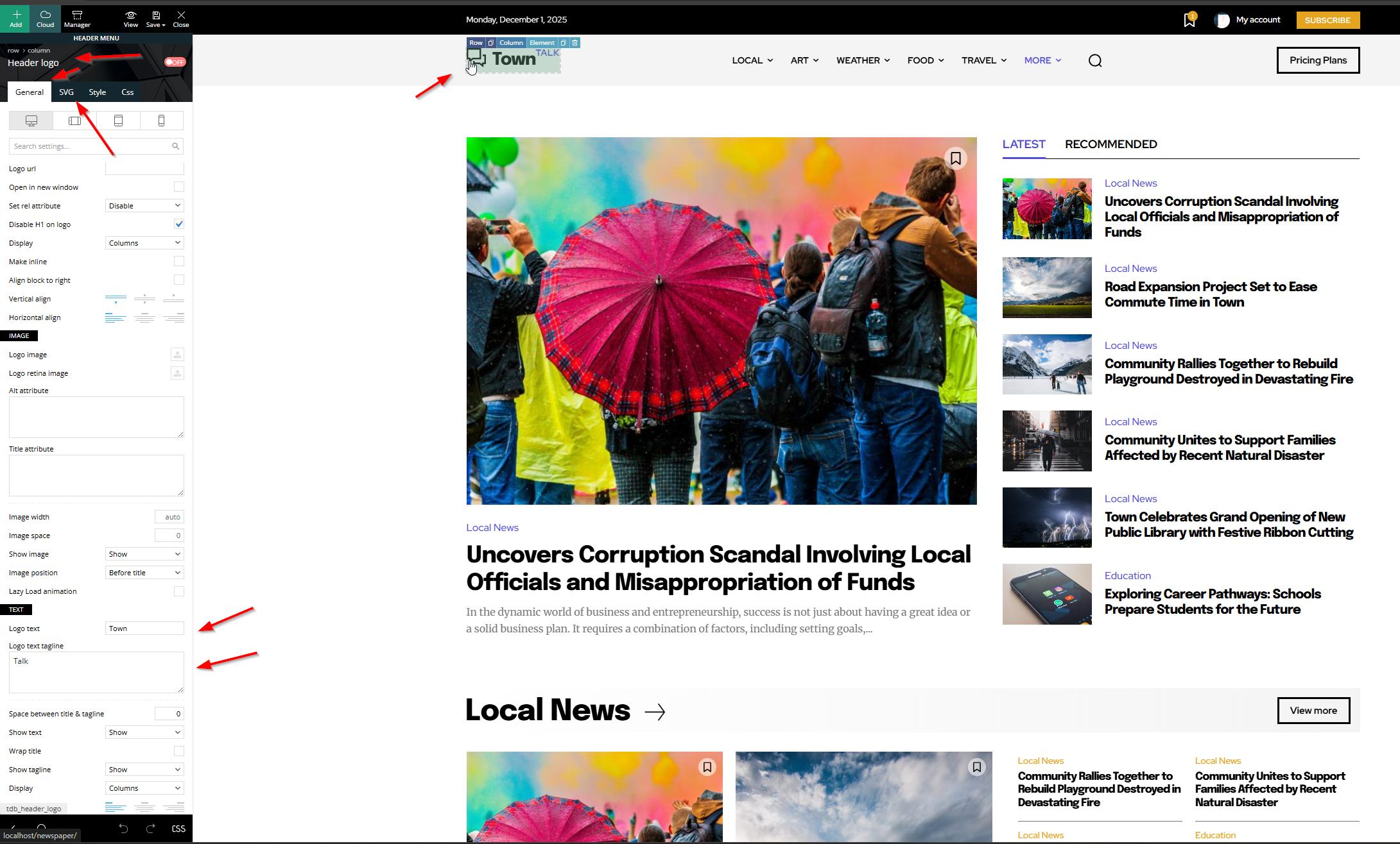 With Newspaper theme, it’s easy to place your brand’s logo wherever you want it. It can be placed in the header, page content, or footer area. Just open your page with tagDiv Composer and search for the Header logo element.