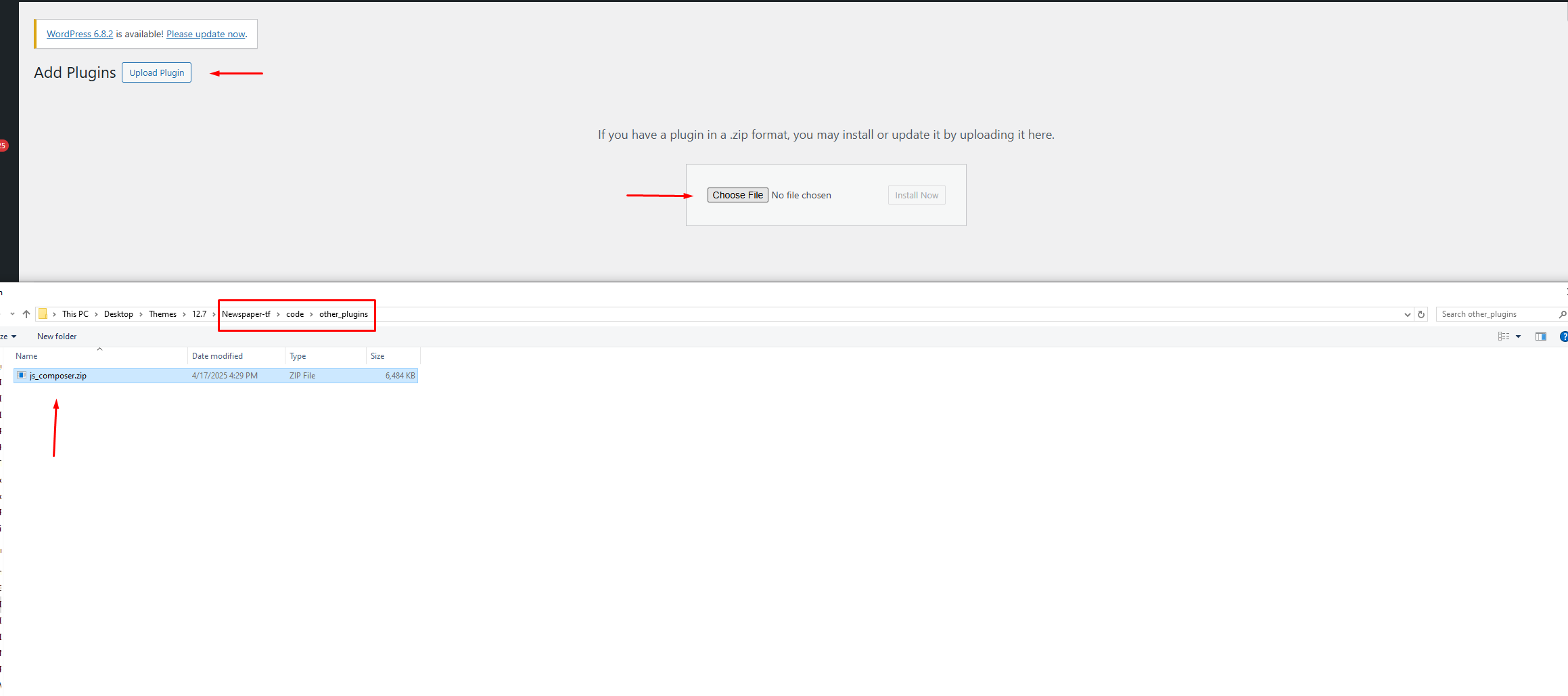 - Select the Newspaper-tf/code/other_plugins/js_composer.zip, press Open