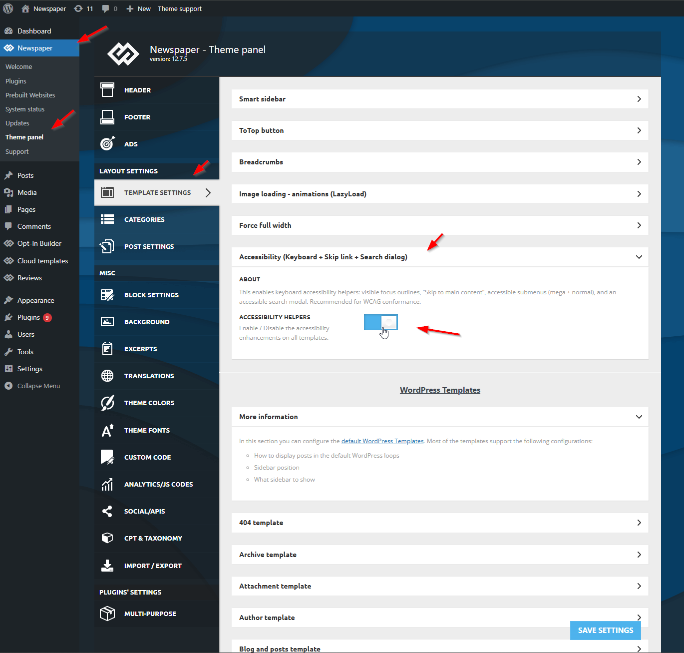 A new Keyboard Accessibility option is now available under Theme Panel > Template Settings.